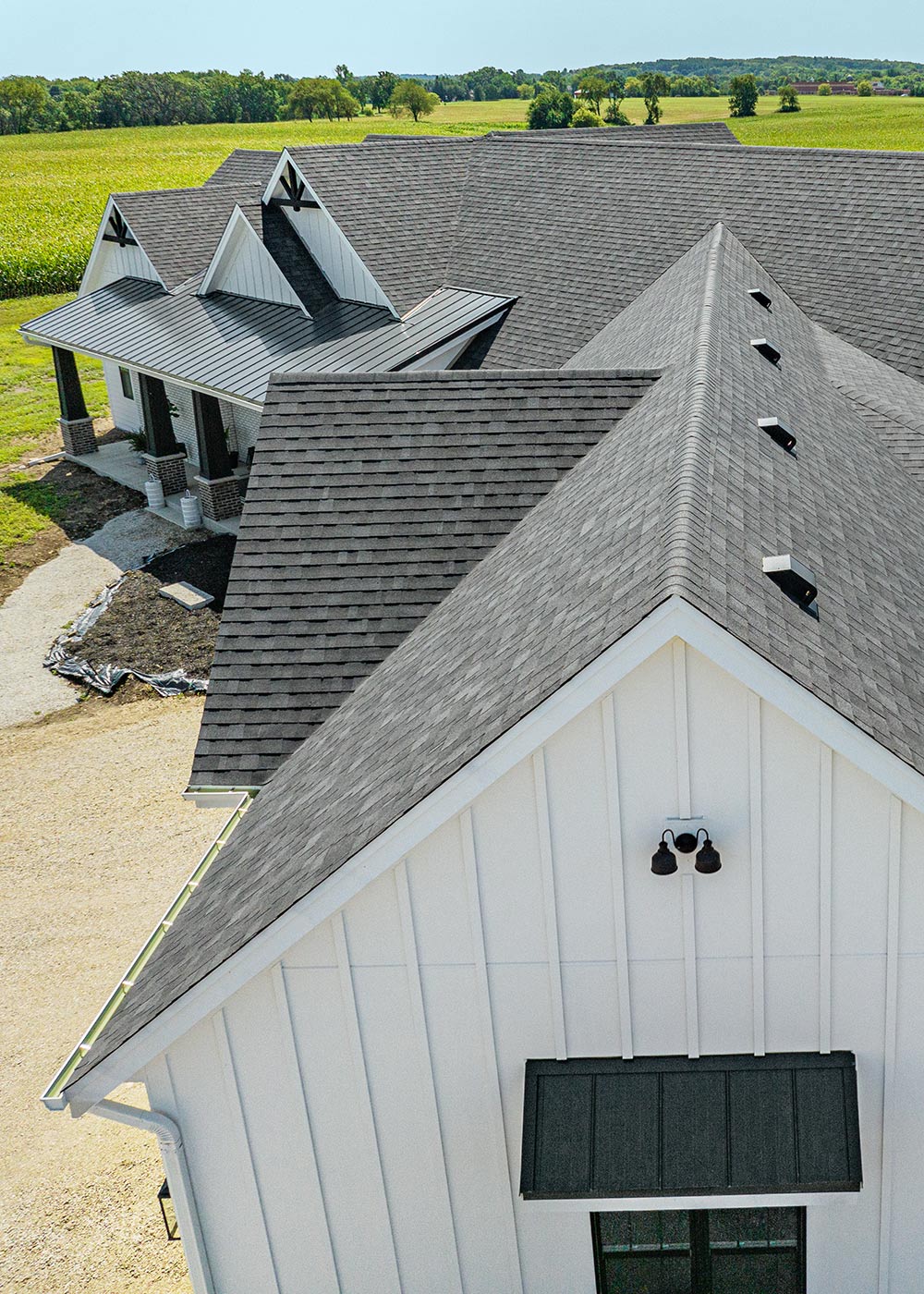 In the ever-evolving landscape of East Troy, Wisconsin, Demo Roofing had the privilege of being a cornerstone in a new home’s construction. Entrusted with the task of roofing for a new residential build, our choice was clear – the dependable Owens Corning Duration shingles, this time in the stunning Onyx Black shade. This modern and sleek color choice not only lays the foundation for an elegant home exterior but also ensures that the new build starts its journey with durability at its core. Our work on this project exemplifies the essence of bringing a vision to life, merging architectural dreams with roofing realities.